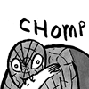 Description: spiderman taking a bite out of some innocent bystander's arm.